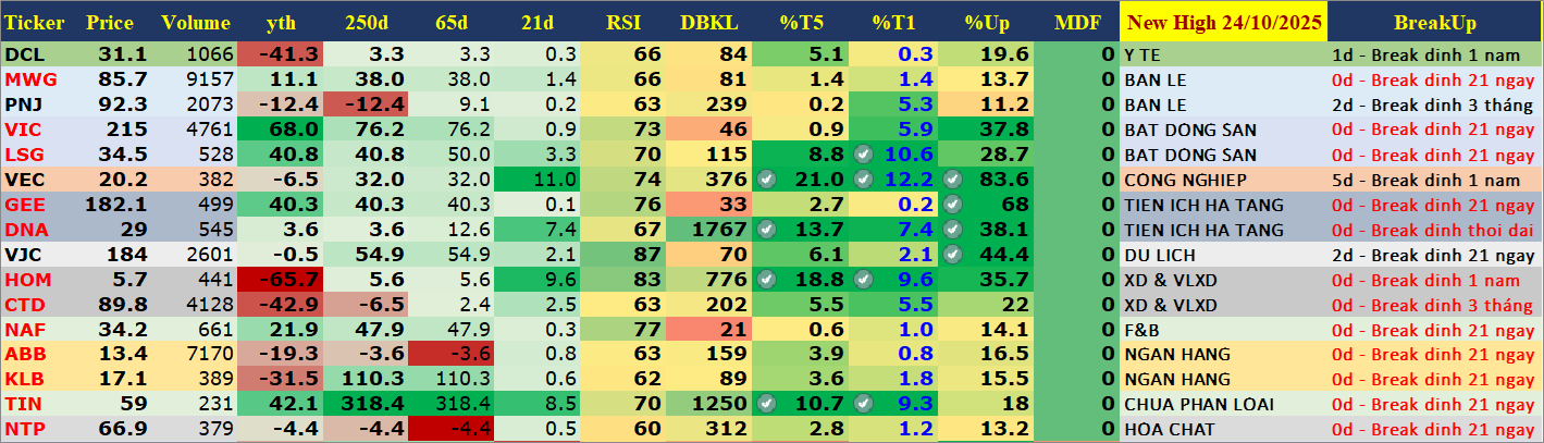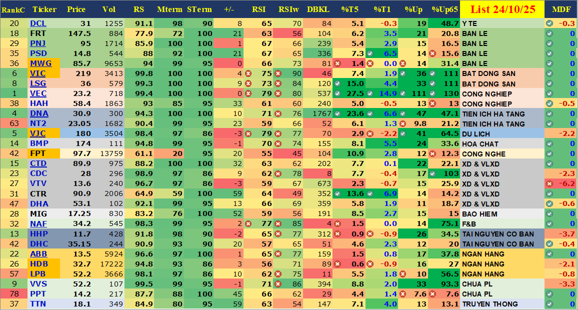 Danh sách những cổ phiếu có điểm tổng hợp RS cao và những cổ phiếu có sự phục hồi ấn tượng sau điều chỉnh