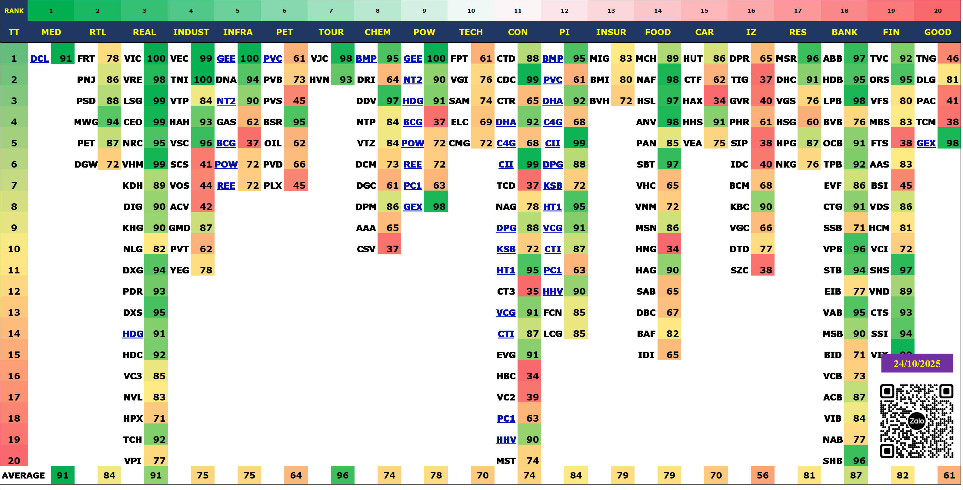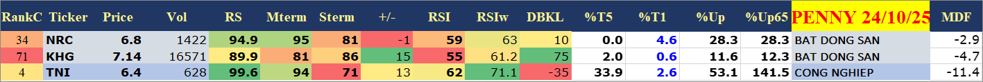 Màu chữ Tím là cổ penny, Xanh là cổ có điểm TOP RS, Gạch chân là giá đang nằm ở vùng đỉnh 3 tháng.